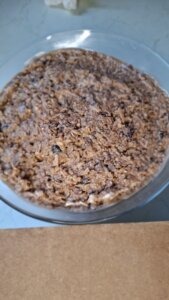 Vse skupaj dobro premešaj in po potrebi prilagodi vlažnost (maso lahko navlažiš z vodo od namakanja).