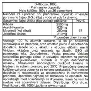 Prehransko dopolnilo za dvig energije z ribozo, magnezijem, acetil-l-karnitinim in malično kislino.