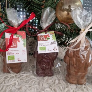 Sestavine: sladkor iz kokosovih cvetov1Kakavovo maslo1Kakav1, Lešniki 14%1Mandlji1, kokosovo mleko v prahu1, Vanilla Bourbon1 – Vsebnost kakavove mase najmanj 52%. ,