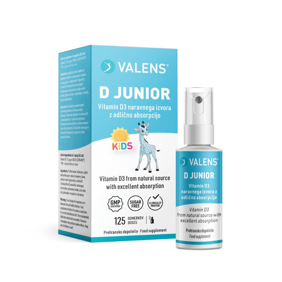 Inovativno prehransko dopolnilo z odličnim okusom jagode. Vsebuje otrokom prilagojen odmerek vitamina D3 (500 IU), ki ima vlogo pri ohranjanju zdravih kosti in delovanju imunskega sistema. Priročna oblika pršila omogoča enostavno in zabavno odmerjanje ter odlično absorpcijo, ki se prične že v ustni votlini.