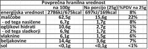 PDV=odstotek orientacijske vrednosti ob 2000kcal dnevne prehrane.