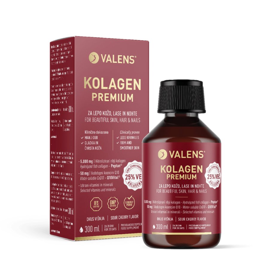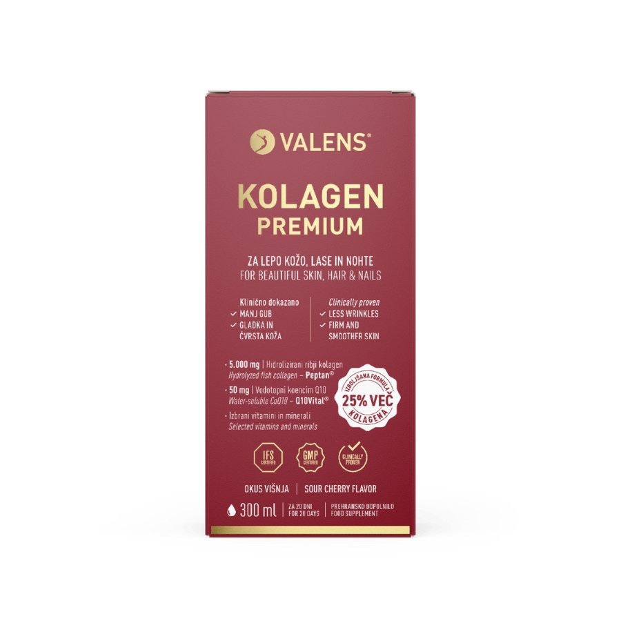 Inovativno in dokazano učinkovito prehransko dopolnilo z edinstveno kombinacijo hidroliziranega ribjega kolagena Peptan® in vodotopnega koencima Q10 v obliki Q10Vital®. Namenjeno je negi kože, las in nohtov od znotraj, njegovi učinki pa so potrjeni z lastno revolucionarno klinično študijo. Izdelek je obogaten z izbranimi vitamini in minerali ter ima odličen okus višnje.